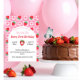 Tarjeta de primer cumpleaños de frutas rosadas y rojas: recuerdo temático de fresa 🍓💌