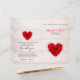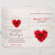 Rojo rojo con forma de corazón en el programa plegado libro de fondo de madera. Tendrá que doblar manualmente esta tarjeta de programa. Productos a juego disponibles. Busque "hhn01" para ver todos los productos con este elegante / romántico diseño de rosa rojo. El programa de bodas con tarjetas para rack de 4" x 9" también está disponible en nuestra colección.