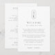 Un detalle eterno y elegante para tu día de boda: esta Tarjeta de Programa de Boda Minimalista presenta un diseño limpio en blanco y negro con un monograma refinado, un mensaje de bienvenida y un horario de eventos bellamente estructurado.
