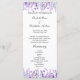 Bonita tarjeta de programa de boda botánica floral de lavanda. Añade el orden de la ceremonia y sus nombres al frente. En la parte trasera hay espacio para los nombres de las fiestas nupciales.