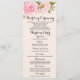 Tarjeta de programa de casamiento floral vintage moderno | Romance Garden Wedding Stationery Suite | Elegante programa de bodas rosa claro con rosas rosadas dibujadas a mano, flores rosadas, peonías rosadas, peonías púrpuras, flores beige, hojas verdes oscuras y ramas de color acuático pintadas a mano. Estilo sofisticado de letra manuscrita, con tipografía de moda clásica. Invitación de bodas de moda. Algunos elementos de CreateTheCut.com. ***NOTA: sólo estilo de ilustraciones dibujados a mano. Las flores se imprimirán y no se dibujarán a mano. Si cambia el tipo de letra o el tamaño del tipo de letra, puede alterar la forma en que se imprime el papel. Imprimirá la forma en que lo ve en su monitor. No veré tu tarjeta una vez que lo pidas, y Zazzle NO editará nada (tipos, alineación, etc.). vintage, moderno, floral, floral, floral, floral, rosa, rosa, elegante, moda, personalizado, personalizado, peony, rosas, pintado a mano, floral vintage, acuarela, elegante, dibujado a mano, vintage, retro, moda, a la moda, capricho, delicado, jardín, naturaleza, pastel.