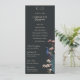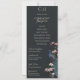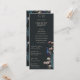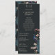 Este elegante y moderno Programa de Bodas de un solo lado negro presenta ilustraciones florales y rústicos de un pájaro pavo real azul y verde azulado encaramado en una rama de magnolia en plena flor, con vibrantes flores de magnolia crema y rosa, todo con un fondo negro moderno. La parte posterior presenta un elegante diseño floral y de aves con ilustraciones coordinados. Personalizar con los detalles de su boda, incluyendo el monograma de novia y novio, la fecha, título, orden de servicio y fiesta de boda.