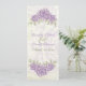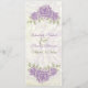 Tarjeta de programa de ceremonia de boda de rosas morados de flor de bello vintage. Da una impresión duradera a este bonito diseño floral, con hermosos rosas de flores de bello púrpura de estilo vintage y hojas verdes sobre fondo de grano. Impresiona a tu familia, parientes y amigos. Romántico y sofisticado, pero contemporáneo al mismo tiempo. Un enfoque moderno a una imagen vintage. Personalízalo con tu texto. Ideal para un boda temático de primavera/verano.
