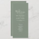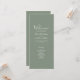 Esta magnífica tarjeta de programa del Día de la Boda, de diseño sencillo, presenta un diseño tipográfico elegante, moderno y minimalista con un tema de color verde oliva. Listo para el personalizar con los detalles de su ceremonia del Día de la Boda. Por favor, navegue por la suite Boda minimalista Olive Green Elegant para ver los artículos de papelería correspondientes.