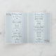 Hermoso floral morado con una mariposa y fondo azul. Cuando usted y su futura pareja inicien su marcha por el pasillo, asegúrese de que sus amigos y familiares estén preparados para celebrar cada paso de su camino con estos elegantes programas de boda doblados. Esta hermosa tarjeta de programa está lista para ser personalizada. Personalice la tarjeta cambiando el texto en los campos proporcionados en todas las páginas. Puede cambiar el estilo de letra, tamaño y color, así como el tipo y estilo de papel.