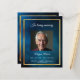 Un elegante programa de 2 páginas. Un cielo azul oscuro como fondo, un marco dorado falso y espacio para una foto. Personalice y agregue el nombre, las fechas y el texto. 1 hoja = 1 programa de borde a borde impreso.