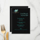 Creado en un estilo brillante para un concurso o almuerzo divertido y elegante. Mostrada en moda Negra sobre papel brillante de calidad, esta tarjeta de programa/menú tiene una pequeña corona de cuatro puntos de color Aqua en la esquina superior izquierda. La mayoría del texto en el centro. Seleccione su tarjeta de estilo. Hemos creado la plantilla para usted, simplemente cambia la información por su cuenta en el lado derecho de su pantalla en el menú de selección. Personalizar aún más si desea cambiar la selección de papel, los colores de texto o texto, los colores de fondo, los estilos de texto o cargar su propia imagen. Agradable elección para recepciones, fiestas jubilados, fiestas de concurso, bolas, almuerzos, eventos, bodas.