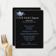 Creado con una tarjeta de 110 libras semi-brillante para una impresión fotográfica óptima, este hermoso giro en una tarjeta de programa de almuerzo clásico está esperando que usted lo personalize con su propia información. Tiene esquinas redondeadas para un aspecto elegante y todo negro para una aventura elegante. El texto se hace en color gris plateado claro y azul y cuenta con una huella de corona brillante azul y plateado en la esquina superior izquierda. El reverso tiene una versión más pequeña de la corona cerca del fondo y espacio para más información. Un toque agradable para tu brunch de premios también. Elija estilos de texto y colores, etc. Debe personalizar este elemento.