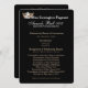 Creada con una tarjeta de 110 lb. semi-gloss para una impresión óptima de fotos, esta tarjeta de programa de almuerzo de doble cara de estilo clásico le espera para personalizar con su propia información. Tiene esquinas redondeadas para un aspecto elegante y todo negro para una aventura elegante. El texto está hecho en tonos blancos y champán, y en la esquina superior izquierda hay una huella de la corona dorada brillante. En el fondo hay texto y una corona más pequeña cerca del fondo. Un toque agradable para tu brunch de premios también. Elija estilos de texto y colores, etc. Debe personalizar a ambos lados de este artículo.