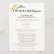Creada con una tarjeta de 110 lb. semi-gloss para una impresión fotográfica óptima, esta tarjeta de programa de almuerzo de estilo clásico le espera para personalizar con su propia información. Tiene esquinas redondeadas para un aspecto elegante y todo el fondo blanco para un ambiente elegante. El texto está hecho en negro y tauro y cuenta con una impresión en Rosa dorado en la esquina superior izquierda en la parte delantera. En la parte posterior, se muestra en negro con texto Taupe y la misma impresión Golden Rosa en la esquina superior. Un toque agradable para tu brunch de premios también. Debe personalizar este elemento. Elija estilos de texto, colores, etc.