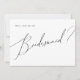 Esta fantástica tarjeta de proposición mínima de guion para la dama de honor es perfecta para su clásico simple y simple boda de boho moderno minimalista en blanco y negro. El diseño presenta una caligrafía escrita a mano, elegante, delicada y romántica, con una tipografía chic y formal. El aspecto irá bien con cualquier estación boda: primavera, verano, otoño o invierno. El producto es editable y tiene mucho espacio en blanco, por lo que puede agregar sus propios gráficos o imágenes si desea personalizar. Por favor siéntase libre de contactar con cualquier pregunta sobre el diseño del producto; estamos encantados de ayudar!
