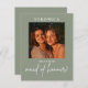 Tarjeta de propuesta de Boho Sage Green Photo Maid of Honor. La palabra "criada de honor" no es editable. Por favor, suba una foto horizontal/horizontal. Compruebe la colección para ver más elementos coincidentes.