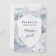 Annabelle Vintage Azul Diseño de Boda con Cresta Floral de Acuarela con flores pintadas a mano, peonías, rosas y detalles de acuarela, todo en un estilo antiguo vintage. Un look chic y trendy para una boda de primavera, verano o invierno, con una paleta de colores pastel suaves: azul marino, lavanda púrpura, rosa rubor y verde menta, con detalles de lámina de azul hielo polvoriento. ¡Además de una fuente de letra manuscrita moderna y divertida - Tarjeta de propuesta de Dama de Honor personalizada!