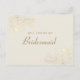 Pide a tus damas de honor con estilo con esta elegante tarjeta de propuesta que presenta tonos suaves marfil y delicado arte floral dorado. La fuente de escritura romántica combinada con un mensaje sincero en la parte posterior la hace perfecta para solicitudes de fiesta de boda vintage, clásicas o formales.