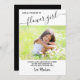 Tarjeta de propuesta de boda personalizada para la niña de las flores con tu propia foto personalizada, elegante letra manuscrita y tema de color en blanco y negro. La plantilla de la foto está configurada para que agregues tu propia imagen al frente. El texto dice "[nombre de la niña de las flores], por favor, sé mi niña de las flores... [nombre del novio] y yo nos vamos a casar, así que la siguiente pregunta es, ¿serás mi niña de las flores? [despedida y nombre de la novia]". Todo el texto es editable, excepto la primera instancia de "niña de las flores" que está escrita a mano. La tipografía y los colores de fondo se pueden cambiar; por favor, haz clic en personalizar más, o envíame un mensaje para obtener asistencia.