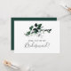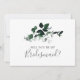Esta tarjeta de proposición de dama de honor es perfecta para un boda boho. El diseño es elegante y rústico, con unas hojas de acuarela verde oscuro y un eucalipto con un toque bohemio moderno. Personalizar la tarjeta con el nombre de la novia y la dama de honor. Personaliza la parte posterior de la tarjeta con un mensaje personalizado.