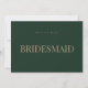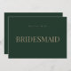Estas elegantes y minimalistas tarjetas de proposición de dama de honor presentan una tipografía de escritura moderna y texto limpio para un diseño verde y dorado sencillo y elegante que le encantará. Añade texto personalizado para proporcionar cualquier información adicional necesaria para tus invitados. Siéntase libre de enviarme cualquier pregunta relacionada con el diseño - ¡estaré encantado de ayudar!