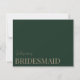 Estas elegantes y minimalistas tarjetas de proposición de dama de honor presentan una tipografía de escritura moderna y texto limpio para un diseño verde y dorado sencillo y elegante que le encantará. Añade texto personalizado para proporcionar cualquier información adicional necesaria para tus invitados. Siéntase libre de enviarme cualquier pregunta relacionada con el diseño - ¡estaré encantado de ayudar!