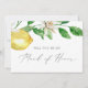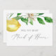 Esta moderna tarjeta de presentación de honor es perfecta para un boda de primavera o verano. El diseño rústico mediterráneo presenta limones acuáticos brillantes y hermosos con flores blancas bohemias y elegantes hojas verdes. Personalizar la tarjeta con el nombre de la novia y la criada de honor. Personaliza la parte posterior de la tarjeta con un mensaje personalizado.