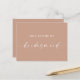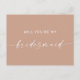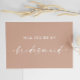 Invite a su futura dama de honor de la manera más elegante con esta tarjeta minimalista de color rosa pálido. Con un fondo suave rosado y tipografía moderna y limpia, esta tarjeta plana es una forma simple pero sincera de hacer la pregunta. Ideal para deslizar en una caja de propuesta o enviar por correo como una sorpresa. El texto en el dorso es totalmente editable.