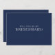 Esta clásica tarjeta de presentación de la dama de honor azul marino es ideal para una boda romántica y elegante. La paleta de color azul marino oscuro y la tipografía vintage mínima le dan un toque formal de moda. El diseño es flexible, perfecto para una simple noche contemporánea, primavera, otoño, verano o boda de invierno. Manténgalo como está, o elige personalizarlo con obras de arte o gráficos de su elección.