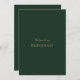 Esta elegante tarjeta de proposición de guion dorado y verde forestal para la dama de honor cuenta con escritura moderna y texto limpio para un diseño verde forestal sencillo y elegante que le encantará. Añade texto personalizado para proporcionar cualquier información adicional necesaria para tus invitados. Siéntase libre de enviarme cualquier pregunta relacionada con el diseño - ¡estaré encantado de ayudar!