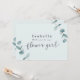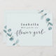 Tarjetas de propuesta para niña de las flores del partido nupcial con marco minimalista simple de eucalipto. Perfecto para su boda de primavera o verano o papelería de boda con tema al aire libre. En una paleta de colores suave y sutil de tonos verdes azulados, menta pastel, grises azules polvorientos y blanco clásico simple. La fuente de caligrafía elegante es una característica para la palabra niña de las flores. Este diseño es perfecto para una boda de granja, campo o jardín. Tarjetas de información de boda de eucalipto simples para enviar a los invitados. Una plantilla fácil de personalizar para su papelería de boda de bricolaje y asequible.