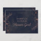 Diseño de boda con borde floral de lámina dorada rosa y azul marino con flores dibujadas a mano, hojas y fondo de acuarela. Un look chic y moderno para una boda de otoño o invierno, con una paleta de colores audaces: detalles de lámina dorada rosa y azul marino. Elementos florales dibujados a mano, fuente de letra script moderna y trendy - Tarjeta de propuesta personalizada de boda ¿Serás mi dama de honor?