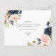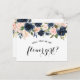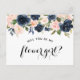 Pide a tus amigos y familiares que formen parte de tu boda con esta tarjeta floral "¿Quieres ser mi dama de flores?" que presenta elementos florales de color azul marino y rosa con letra de caligrafía femenina. Hay artículos coincidentes disponibles. Tarjeta de propuesta para el séquito nupcial