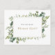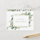 Pide a tus amigos y familiares que formen parte de tu boda con esta tarjeta floral "¿Quieres ser mi dama de honor?" que presenta elementos verdes botánicos y hojas de eucalipto acuarela. Artículos coincidentes están disponibles. Tarjeta de propuesta para la fiesta de la novia