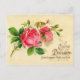 Tarjeta de publicidad francesa del vintage para el chocolate que ofrece dos rosas de color rosa oscuro hermosos.