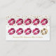 Lips de Purpurina rosado caliente y elegantes tarjetas de punzonado de fidelidad de diseñador de oro. (Para productos y diseños coincidentes, escriba Palabra clave: PURPURINA LIPS ) (Nota: No es un verdadero Purpurina, es una impresión) ⭐ Este producto es un 100% de Personalizable. Los gráficos y/o el texto se pueden borrar, mover, cambiar de tamaño, girar, etc... El 99% de mis diseños en mi tienda están hechos en capas. Esto facilita el redimensionar y mover los gráficos y el texto para que encajen perfectamente en cada producto. ⭐ (Asegúrese de cambiar el tamaño o mover los gráficos si fuera necesario antes de realizar el pedido) También puede "TRANSFER DESIGN" en otros productos de Zazzle y ajustar el diseño para que se ajuste a la mayoría de los artículos de Zazzle. (el botón está en el lado derecho de la página) Algunos de los gráficos de texto están listos para rellenar los cuadros o puede pulsar sobre el botón "PERSONALIZAR" para añadir, mover, borrar, cambiar el tamaño, el color de fondo o cambiar cualquiera de los tipos de letra o gráficos. El diseño se realiza con vectores de alta resolución y/o gráficos digitales para una impresión profesional. ⭐ NOTA: (ESTA ES UNA IMPRESIÓN. Todos los diseños de productos de zazzle son "impresiones" a menos que se indique lo contrario en "Acerca de este producto") El diseño se imprimirá EXACTAMENTE como lo ves en la pantalla y en el producto...por lo tanto, asegúrese de que cuando realice sus cambios en el redimensionamiento de cualquiera de los gráficos o textos que encajan correctamente en las áreas y de que su ortografía y su redacción sean como le gusta que sea en tamaño, color y tipo de letra. Si tiene alguna pregunta sobre el "DISEÑO" o necesita ayuda, póngase en contacto conmigo en siggyscott@comcast.net o visite el enlace de mi tienda: http://www.zazzle.com/designsbydonnasiggy?rf=238713599140281212 (Copiar y Pegar) Estaré encantado de ayudar. ⭐ Todas las demás preguntas (envío, reembolso, impresión, producto, etc...) por favor contacte con Zazzle o el Maker ⭐ DIRECTAMENTE ⭐. Gracias por el apoyo y por parar por mi tienda - DesignsbyDonnaSiggy. © Donna Siegrist