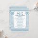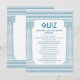 Elegante tarjeta de quiz de fiesta griega con columnas de templo minimalistas y patrón de meandro griego en azul. Perfecta para su evento temático de Antigua Grecia o Antigua Roma.