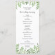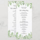 Tarjetas de programa de boda con tema de naturaleza con hojas elegantes de acuarela verde. Perfecto para bodas de vegetación primaveral y eventos de jardín botánico modernos.