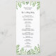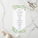 Tarjetas de programa de boda con tema de naturaleza con hojas elegantes de acuarela verde. Perfecto para bodas de vegetación primaveral y eventos de jardín botánico moderno.