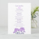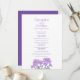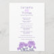 Flor morada de crisantemo de doble cara sobre fondo blanco y un lado sobre el programa de bodas de fondo morado. Conjunto estacionario del boda de dibujo botánico de contorno floral. Edite este programa de bodas con su propio nombre, fechas, redacción de la ceremonia, asistentes a la fiesta de bodas y gracias. Un programa sencillo pero elegante simplemente reemplaza el texto de ejemplo con los detalles de la información de su boda. Programa de ceremonia de boda púrpura moderno. Esquema de dibujo y diseño de Sarah Trett para www.mylittleeden.com y www.mylittleedenweddings.com