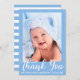 Tarjeta azul de nuevo bebé gracias - Parte posterior de rayas azules