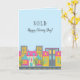 "VENDIDO - ¡Feliz Día de Clausura!" tarjetas para agentes inmobiliarios. Excelente para los vendedores al cerrar. El diseño se caracteriza por un bonito barrio urbano con un fondo azul claro. Perfecto para inmobiliarios residenciales, prestamistas hipotecarios, agencias de títulos, servicios de inspección domiciliaria, etc.