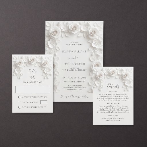 Tarjeta De Recepción 3D Sculptured Roses Minimalist White