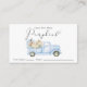 Cuta tarjeta de juego para la ducha de su bebé con "Adivina cuántas calabazas" en una mezcla de tipografía gris y un guión elegante con un latido cardíaco y una acuarela de un camión azul vintage cargando calabazas. Coloque un frasco o una botella llena de calabazas de caramelo sobre una mesa y pida a sus invitados que adivinen cuántos están en el frasco. El ganador será el invitado que se acerque más sin acercarse. En nuestra Colección de Ducha Bebé Truck Blue Vintage hay disponible una señal de exposición similar.