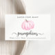 Tarjeta de juego para tu ducha de bebé con "Adivinen cuántas calabazas" escrita en una simple tipografía gris y un guión elegante con toques y una acuarela de una calabaza rosa pastel. Coloque un frasco o una botella llena de calabazas de caramelo sobre una mesa y pida a sus invitados que adivinen cuántos están en el frasco. El ganador será el invitado que se acerque más sin acercarse. En nuestra Colección Sweet Little Pumpkin Baby Shower se encuentra disponible un cartel de exhibición similar.