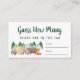 Tarjeta de juego para tu ducha de bebé con "Adivinen cuántos osos hay en el jabón" escrito en tipografía rústica y un guión verde del bosque y un ilustracion acuarela de animales de bosque con su tienda acampando en las montañas y el bosque bajo un cielo de estrellas doradas. Coloca un frasco o una botella llena de osos gomis sobre una mesa y pide a tus invitados que adivinen cuántos hay en el frasco. El ganador será el invitado que se acerque más sin acercarse. En nuestra colección de Baby Shower Adventure Awaits Woodland Animals encontrará una señal de pantalla coincidente.