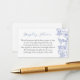 Tarjeta de ducha de exhibición con arte floral azul y poema "Por favor, trae tu regalo sin papel ni bolsa,