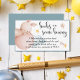 Para obtener más personalizaciones, envíe un correo electrónico a hi.yellowmoonatelier@gmail.com. Invite a los huéspedes a ayudar a construir la biblioteca del bebé con esta adorable tarjeta de presentación de algunos conejillos fotográficos para Baby Shower de Yellow Moon Atelier. Con un conejito de bronceado sobre un polvoriento globo rosa, rodeado de suaves nubes azules, estrellas brillantes y una adorable estrella fugaz, esta tarjeta anima a los clientes a llevar un libro en lugar de una tarjeta. Una manera reflexiva de celebrar, complementa perfectamente el resto de la colección Baby Shower de la Estrella de los Tiroteos de algunos conejitos para un dulce y cohesivo evento.