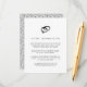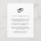 La encantadora tarjeta de información para invitados a la boda en blanco y negro presenta una ilustración de estilo vintage de una alianza y un anillo de diamantes en la parte superior. Reemplace el texto de muestra con los detalles clave de su celebración de boda.