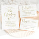 El moderno hotel de boda, dorado y blanco (se pueden modificar los colores), presenta un diseño tipográfico elegante con moda caligráfica y acento cardíaco. El sencillo y elegante texto personalizado que puede ser personalizado para dos hoteles con sus datos de contacto y la información de los bloques de habitaciones.