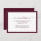 Este elegante y minimalista hotel boda cuenta con una elegante tarjeta de alojamiento con borde doble borgoña con texto y escritura burdeos.