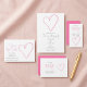 Fije el tono para la celebración de su boda con esta sofisticada tarjeta de inserción RSVP, con un vibrante corazón de amor rosa dibujado a mano que irradia brillo y romance. El dibujo animado, combinado con un guión elegante y detalles de contacto nítidos, crea un ambiente acogedor y alegre para sus huéspedes. Diseñada para una organización boda perfecta, esta tarjeta de respuesta equilibra un punto focal lúdico y llamativo con el estilo moderno de papelería boda, lo que la convierte en la adición perfecta a su conjunto de invitaciones para fiestas. El fondo blanco limpio resalta tanto el ilustracion encantador como los detalles del RSVP, asegurando que las respuestas se reúnan con facilidad y con un toque de sentidos deseos.