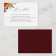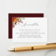 Rústico y colorido ramo de flores y follaje de otoño con respaldo rústico de color burdeos rojo, tarjetas de alojamiento boda.