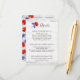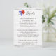 Incluya esta pequeña tarjeta con sus invitaciones para ayudar a preparar a los invitados con información adicional y detalles importantes de la boda. Las amapolas rojas vibrantes y las preciosas acacias azules ofrecen un toque de color enérgico sobre un fondo de madera rústica blanqueada. Este diseño con estilo moderno y rústico está lleno de encanto silvestre para la boda campestre romántica.